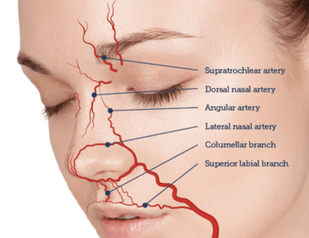 Have you ever wondered why your face bleeds a lot, and heals so quickly? This image gives you some idea of the arteries under our skin – the ones I aim to avoid when injecting dermal filler. There are a myriad of these arteries and smaller veins, and it takes years of training and study …